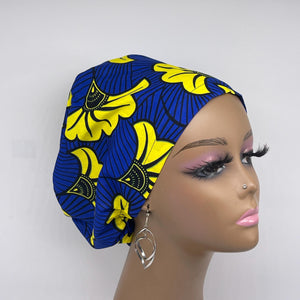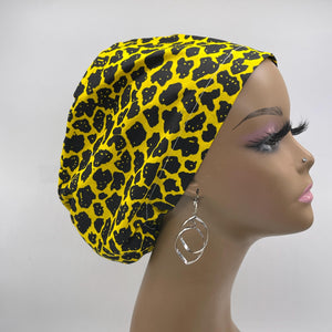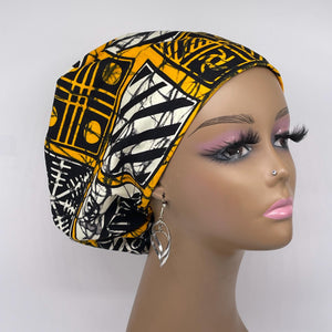 Niceroy Surgical SCRUB CAP Yellow black Ankara Europe style nursing caps cotton African print fabric and satin lining option.