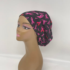 Niceroy Satin Lined BREAST CANCER AWARENESS Europe Style surgical scrub hat, nursing caps Black pink ribbon Hat Cap